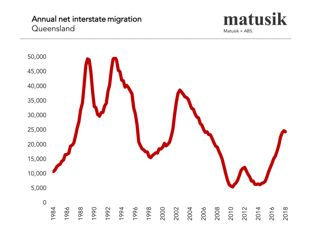 Below is a copy of the annual net interstate migration to Queensland and you can see how it has increased significantly since 2014.
